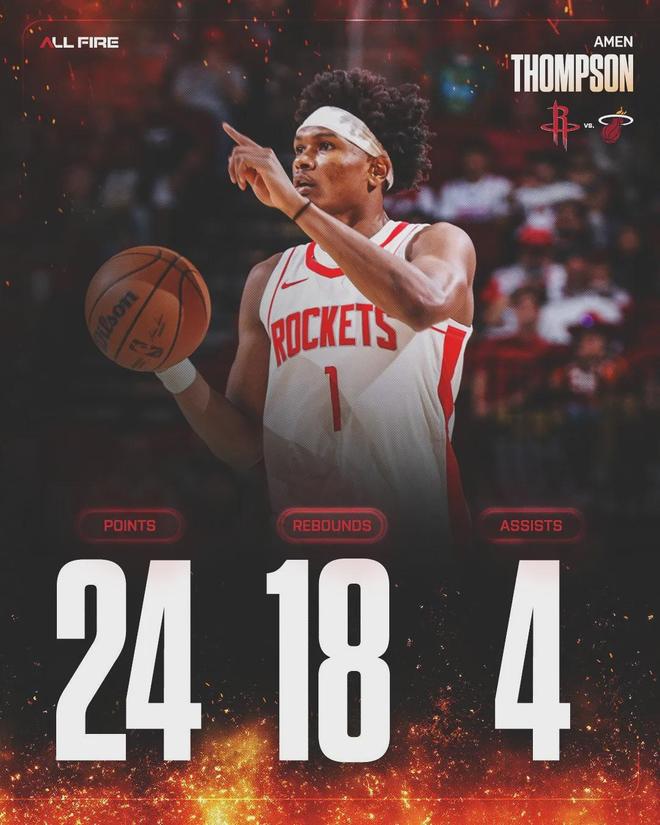此役阿門狂搶18個籃板球(7前場板)外加24分4助,其中18板為個人NBA生涯新高。