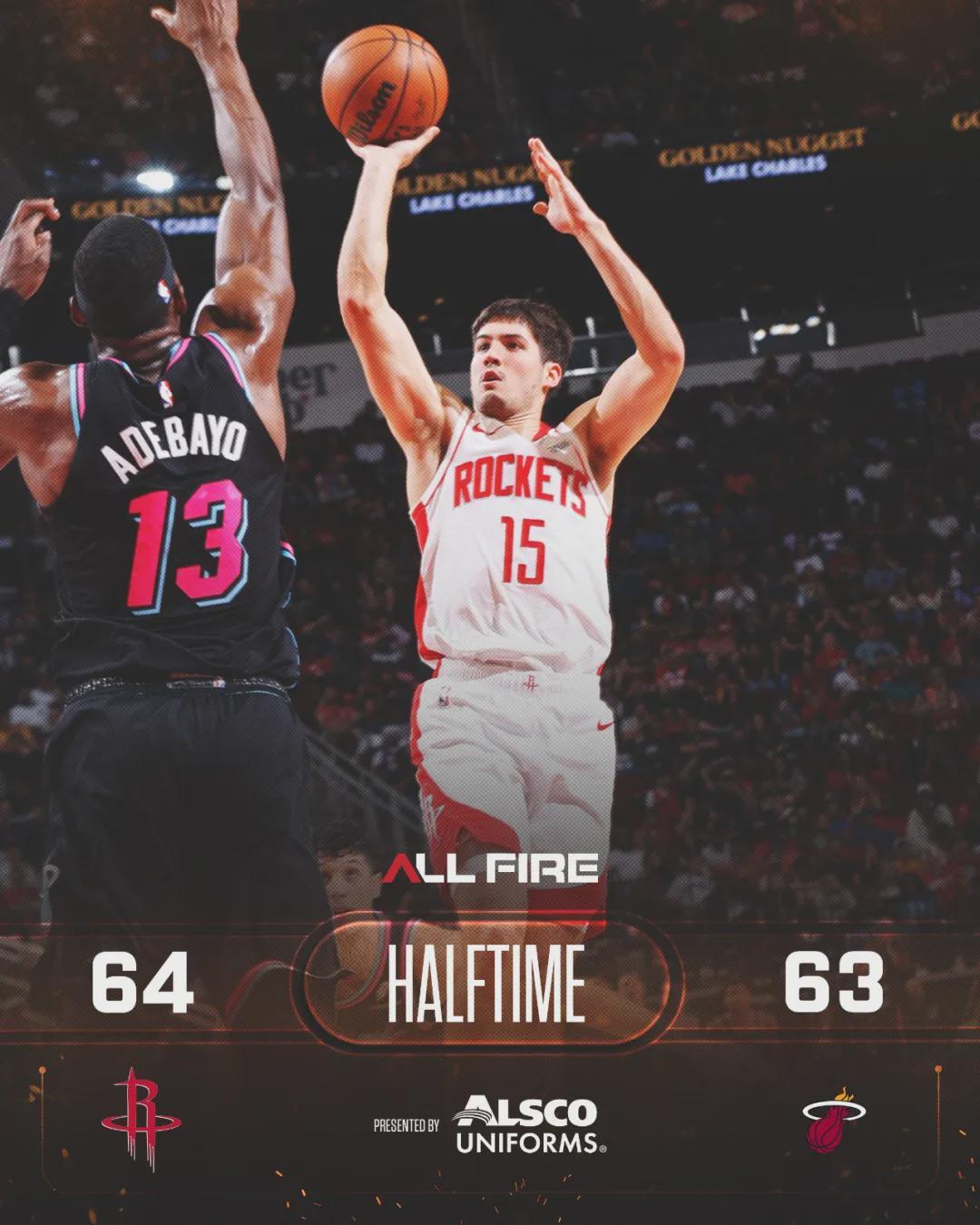 北京时间3月22日,NBA常规赛:火箭123-122绝杀热火。阿德巴约21投12中,三分4中2,罚球8中6,狂砍32分21篮板4助攻2抢断。阿门-汤普森17投10中,三分1中1,罚球3中3,砍下24分18篮板4助攻,最后时刻压哨补篮绝杀。