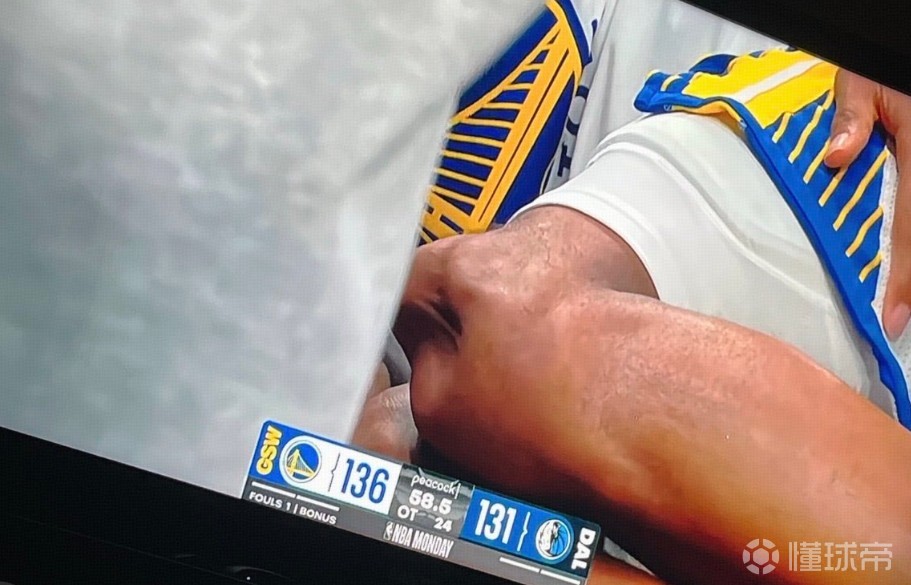 比赛进行到加时赛还剩1分钟时,勇士后卫穆迪抢断欲完成扣篮,但脚下打滑,在空中失去平衡摔倒在地,随后穆迪捂着自己的膝盖。