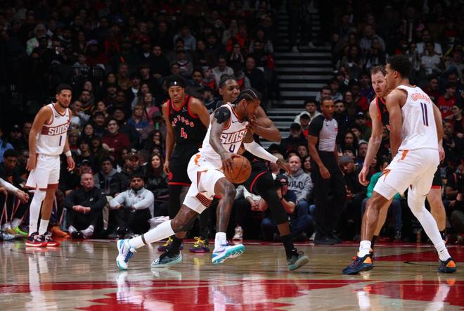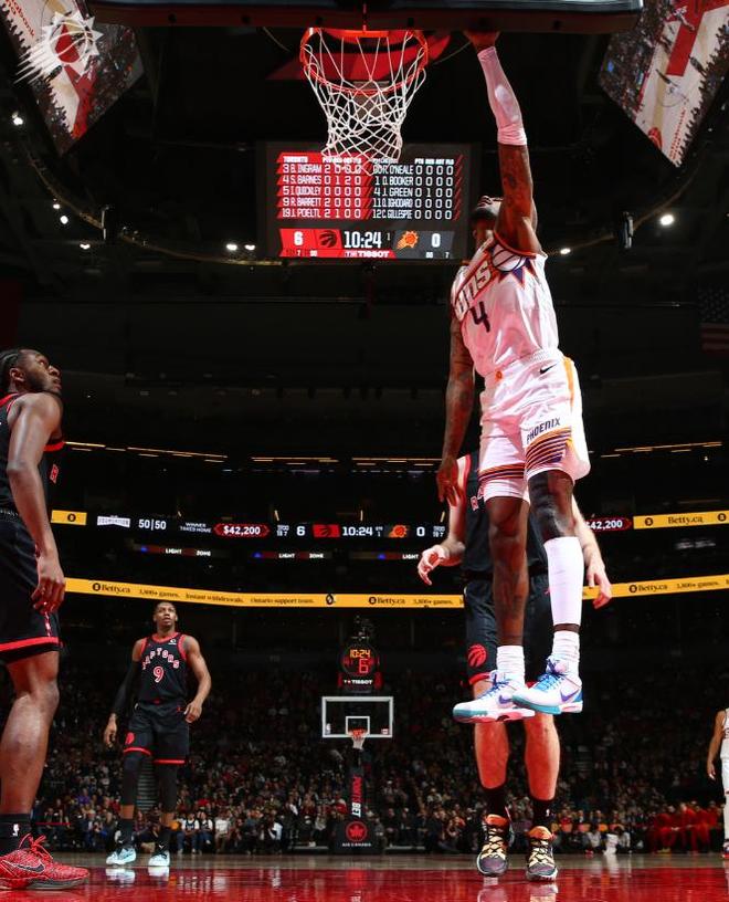 比賽開打之後,佈克和傑倫格林就展現出瞭火熱的進攻狀態,作為戰術核心的佈克,前兩節在猛龍的嚴防死守之下,雖然沒有送出1次助攻,但是超強的單打能力,也讓對手付出瞭代價,半場12中6飆下瞭17分,傑倫格林更是外線頻頻開炮,兩節命中5記三分球狂砍19分,幫助太陽帶著3分的優勢,回到瞭中場更衣室。
