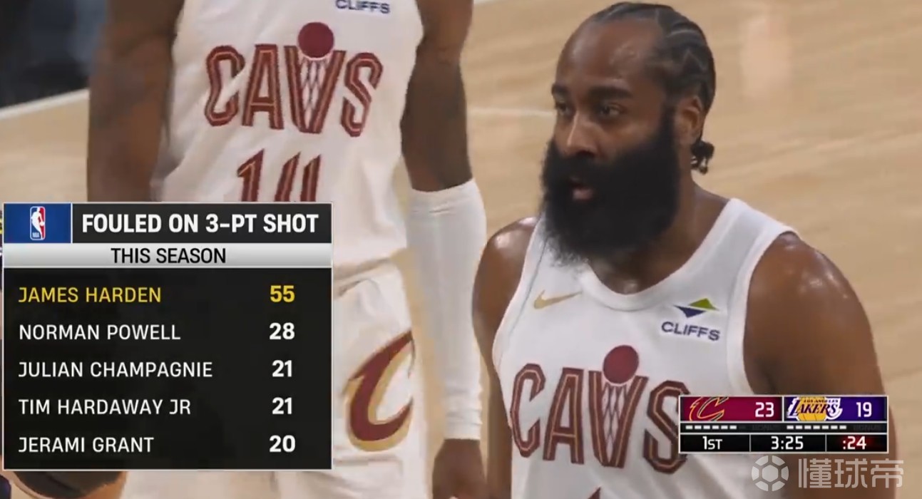 比赛当中,转播商晒出一组数据,本场比赛之前,骑士球星哈登赛季至今55次造成三分犯规断层领跑全联盟,热火球员诺曼-鲍威尔28次位列次席,马刺球员朱利安-尚帕尼和独行侠球员小蒂姆-哈达威以21次并列第三。