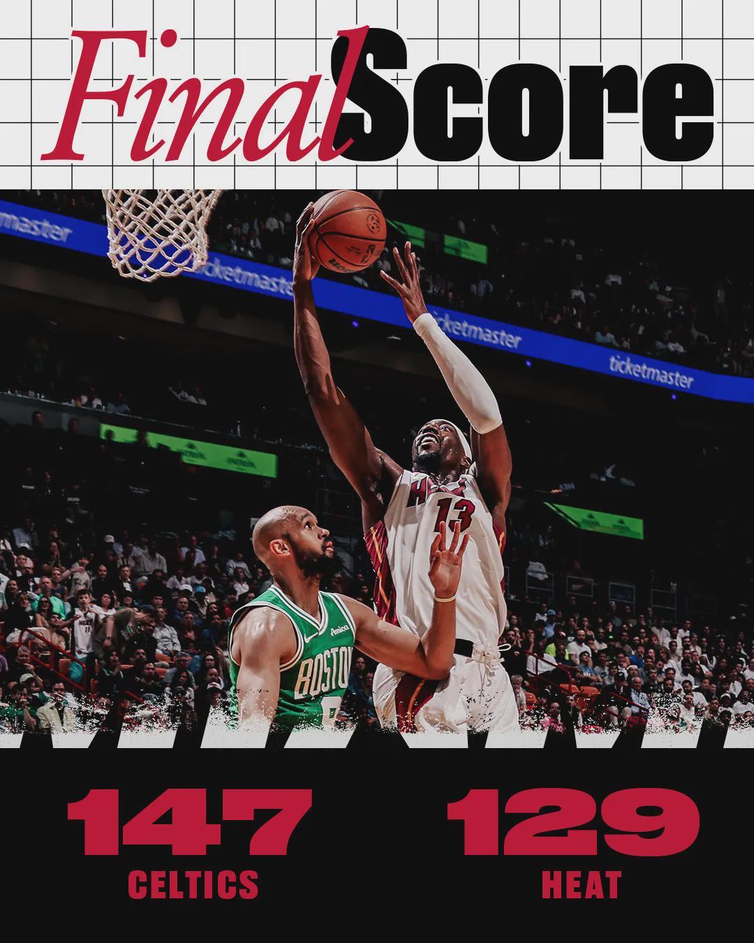 凯尔特人本赛季4-0横扫热火,过去20次交手,凯尔特人17胜3负。3月28日,热火128-149惨败给骑士,五天两次被对手砍下145+!阿德巴约此前表态不想再打附加赛了,今天赛后他改口:“争取赢下剩余五场比赛,以平和的心态接受最终排名。”