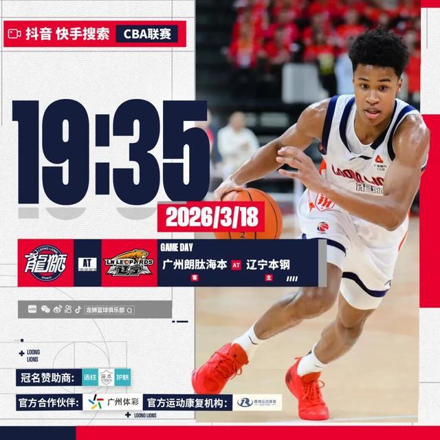 2025-2026賽季CBA聯賽常規賽 第二十七輪 - 遠征東北 客場挑戰遼寧2026年3月18日 明晚 19:35廣州朗肽海本(客) — 遼寧本鋼(主)直播:抖音、快手搜索 CBA聯賽(註:本場為潛力賽場次)