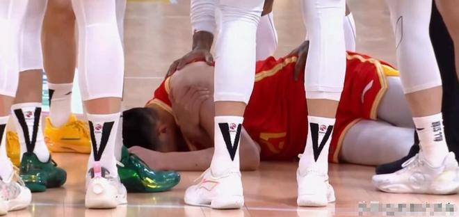 在球被奪走的同時,胡金秋也捂著左臂痛苦地倒在地上。