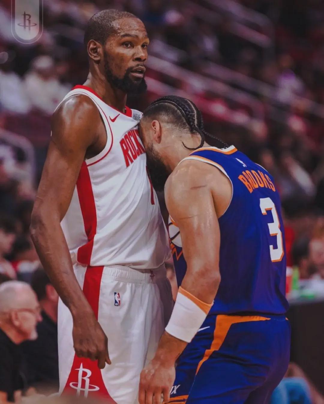 火箭球员知道狄龙经常被情绪左右,今天小贾在狄龙头上造成三分犯规之后,火箭替补席全都站起来!杰夫-格林指着狄龙,杜兰特和范乔丹疯狂鼓掌、嘲讽狄龙。火箭连续两个赛季横扫太阳,只不过上赛季杜兰特在太阳,如今在火箭。