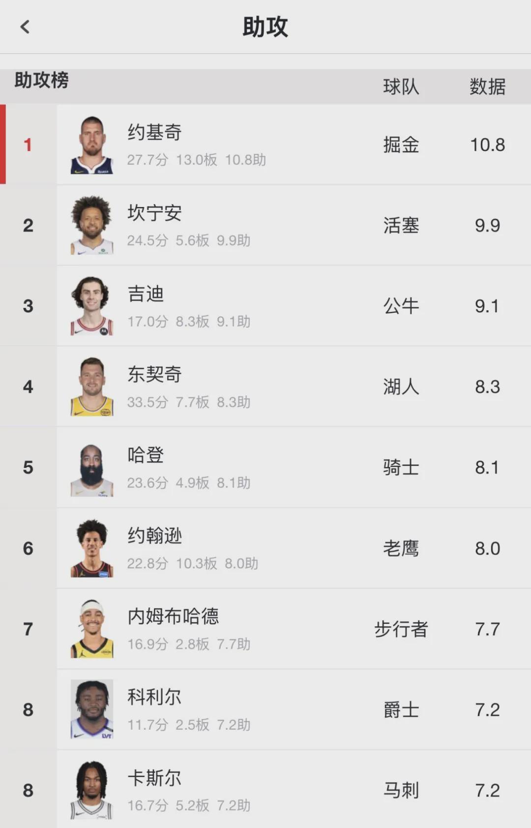 本赛季坎宁安为活塞打了61场比赛,场均出战34.4分钟,得到24.5分5.6篮板9.9助攻1.5抢断0.9盖帽3.7失误,三项命中率:46.1%,34.6%,81.4%。场均助攻高居联盟第二,仅次于约基奇的10.8次,可惜坎宁安无缘常规赛评奖。