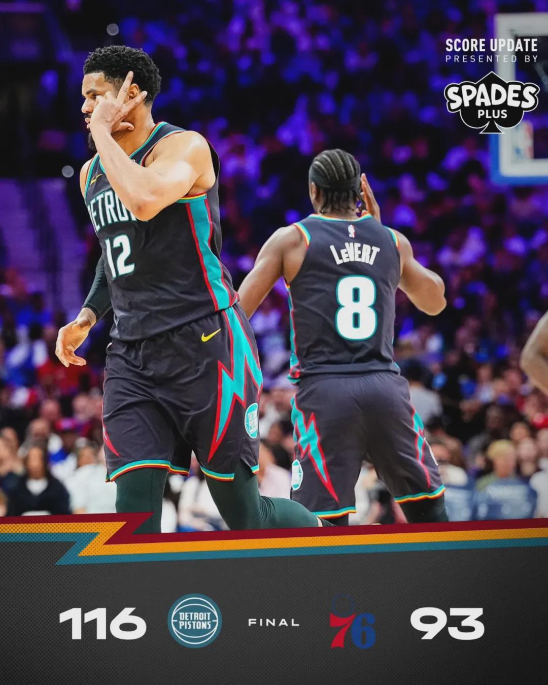 北京时间4月5日,NBA常规赛:活塞客场116-93大胜76人,活塞核心坎宁安因气胸继续休战。此役过后,活塞57胜21负,提前4场锁定东部第一。这是自2006-07赛季(53胜29负)之后,活塞时隔19年再次锁定常规赛东部第一。