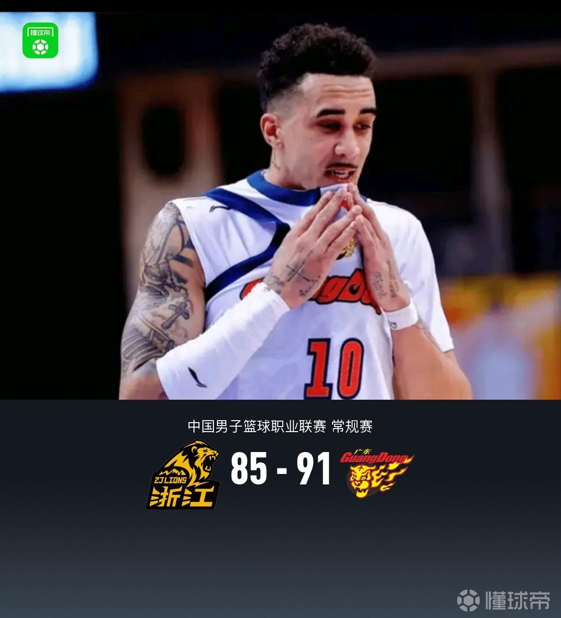 北京时间4月12日中国男子篮球职业联赛 常规赛,浙江方兴渡对阵广东东阳光。开场广东便取得9-0开局,随后持续保持领先,半场广厦40-51广东,三节结束广东领先14分,末节广东最大领先18分,后半节广厦反扑无果,最终广东91-85力克广厦。