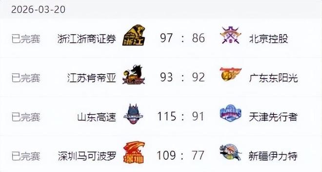 在其他三場同時進行的比賽中,廣廈男籃以97-86戰勝瞭北控男籃,山東男籃以115-91大勝瞭天津男籃,深圳男籃則是以109-77的比分送給新疆男籃一場32分的慘敗。