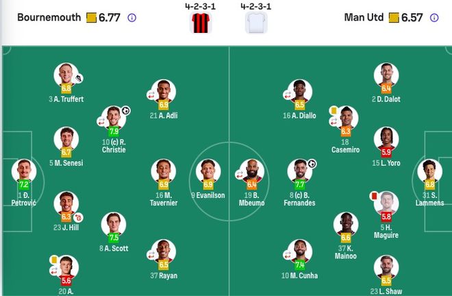 曼聯首發:31-拉門斯、2-達洛特、15-約羅、5-馬奎爾、23-盧克-肖、37-梅努、8-B費、18-卡塞米羅(82'25-烏加特)、16-迪亞洛(96'7-芒特)、10-庫尼亞(82'26-海文)、19-姆伯莫(71'30-謝什科)