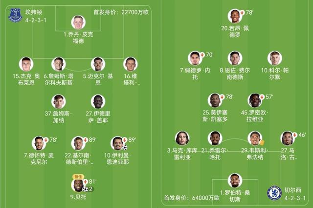 埃弗頓用簡單高效的反擊三次洞穿藍軍大門,藍軍全場控球占優卻轉化乏力,面對狀態出色的皮克福德毫無辦法,攻防兩端可謂全面失衡。