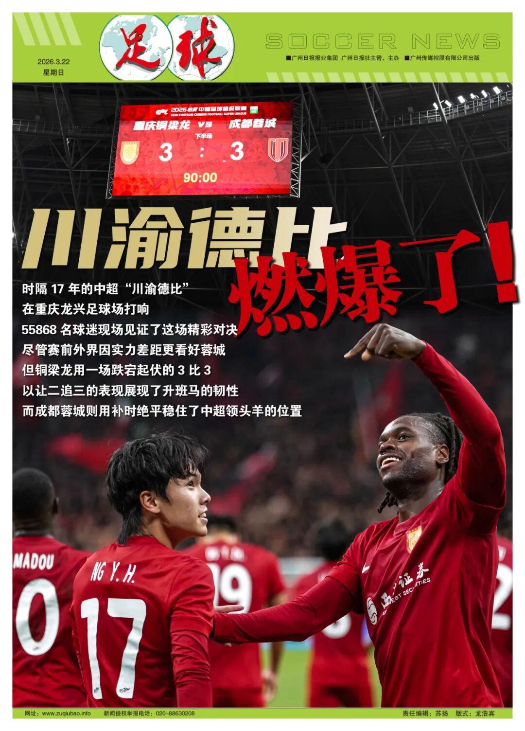 记者鲁蜜报道3月21日晚,时隔17年的中超“川渝德比”在重庆龙兴足球场打响,升班马重庆铜梁龙坐镇主场迎战成都蓉城,55868名球迷现场见证了这场精彩对决。尽管赛前外界因实力差距更看好蓉城,但铜梁龙用一场跌宕起伏的3比3,以让二追三的表现展现了升班马的韧性,而蓉城外援席尔瓦的离场,成为本场比赛的关键转折点。