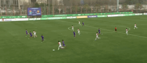 第13分钟,齐龙脚后跟做球,和康豪破门,上海赛更达1-1上海海港B队