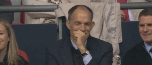 镜头给到看台,英格兰队主帅图赫尔现场观战