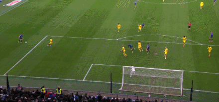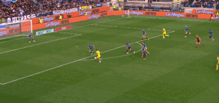 第56分钟,克尔斯托维奇单刀机会,挑射击中横梁