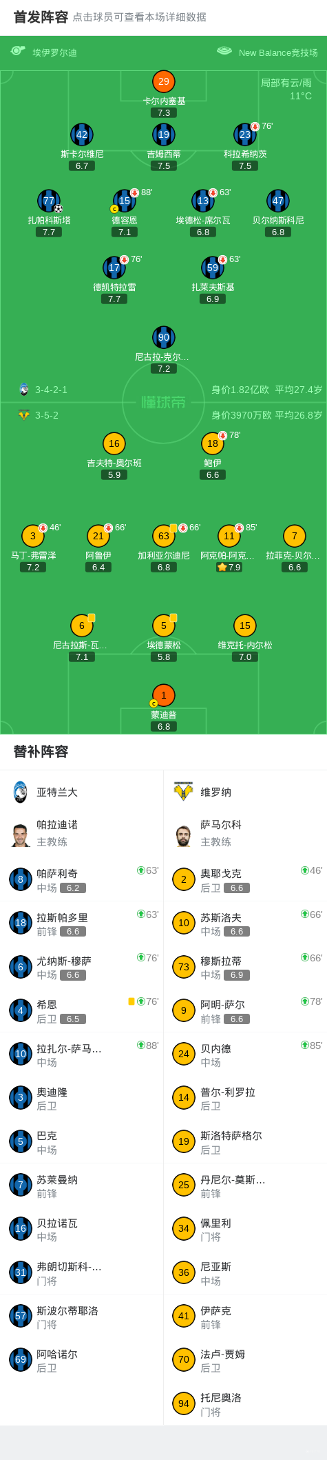 第38分钟,扎帕科斯塔内切打门,皮球直挂死角,亚特兰大1-0维罗纳