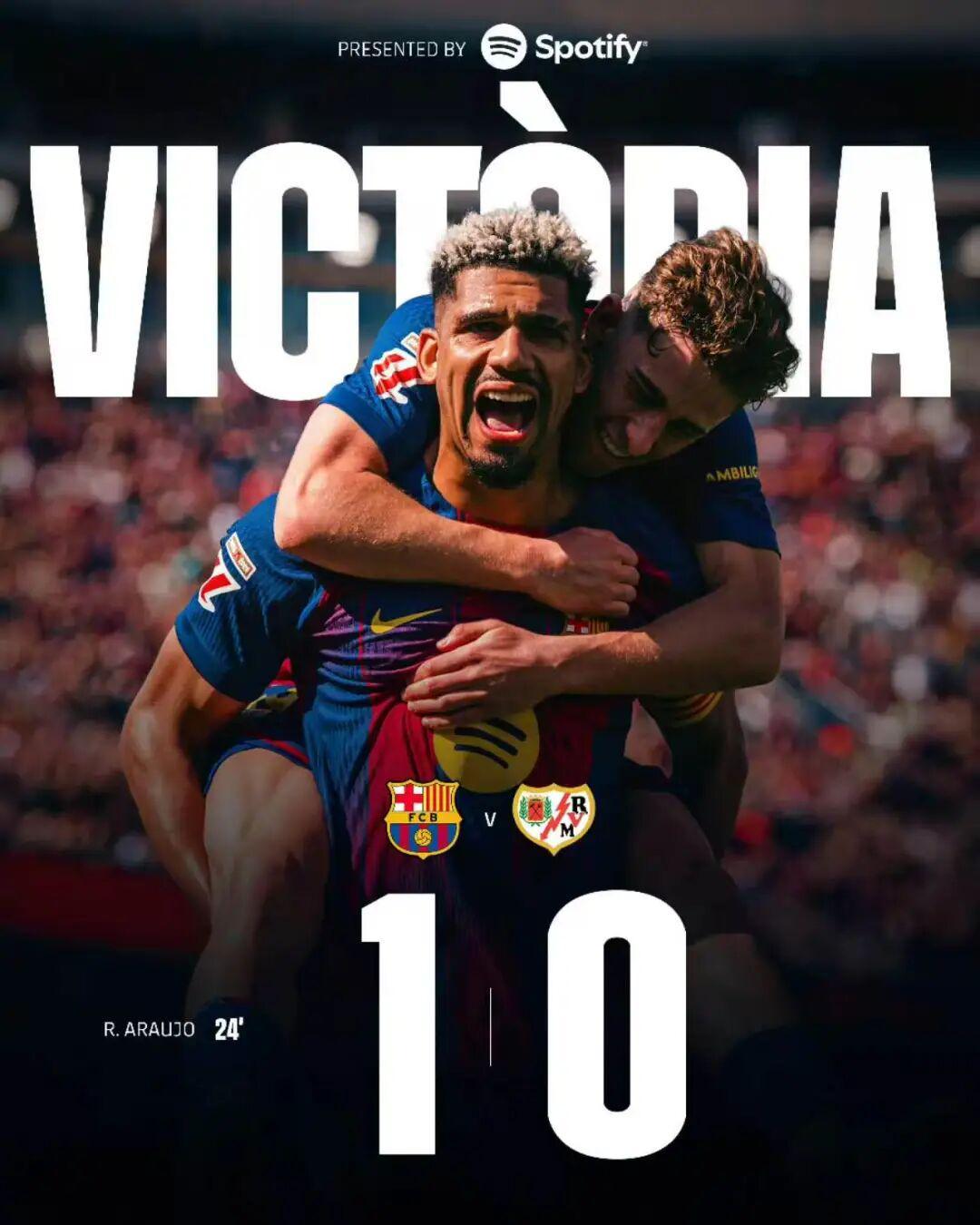 北京时间3月22日晚21点,巴塞罗那坐镇主场迎战巴列卡诺。上半场比赛,拉菲尼亚造险,坎塞洛角球助攻阿劳霍头球破门打破僵局,随后拉菲尼亚远射被扑出后击中门框。易边再战,亚马尔精彩摆脱后打门偏出,主队球员埃斯皮诺单刀绝佳机会偏出球门。最终,巴塞罗那主场1比0力克巴列卡诺,豪取西甲5连胜。