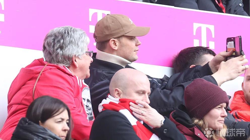 安联球场看台上同样精彩纷呈。拜仁队长曼努埃尔-诺伊尔与身旁一位年长女球迷自拍,他主动拿过对方手机完成合影,这位2014年世界杯冠军门将本场比赛因伤缺席。尽管在左小腿肌肉再次撕裂两周后已恢复合练,但俱乐部不愿冒险,预计他将在4月初复出。