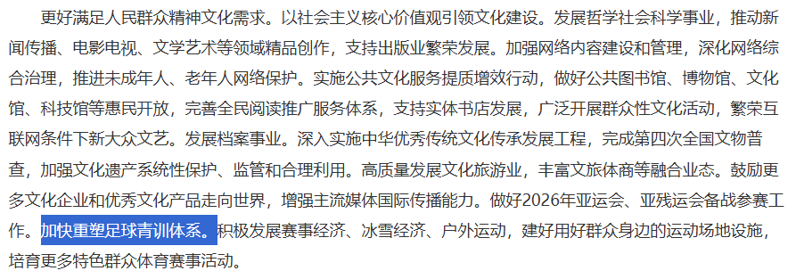 政府工作报告中与青训相关的内容