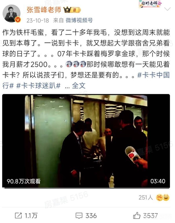 AC米兰官方微博发文悼念张雪峰:“AC米兰足球俱乐部对张雪峰老师的不幸离世深感悲痛。我们向他的家人致以深切哀悼和衷心慰问。”