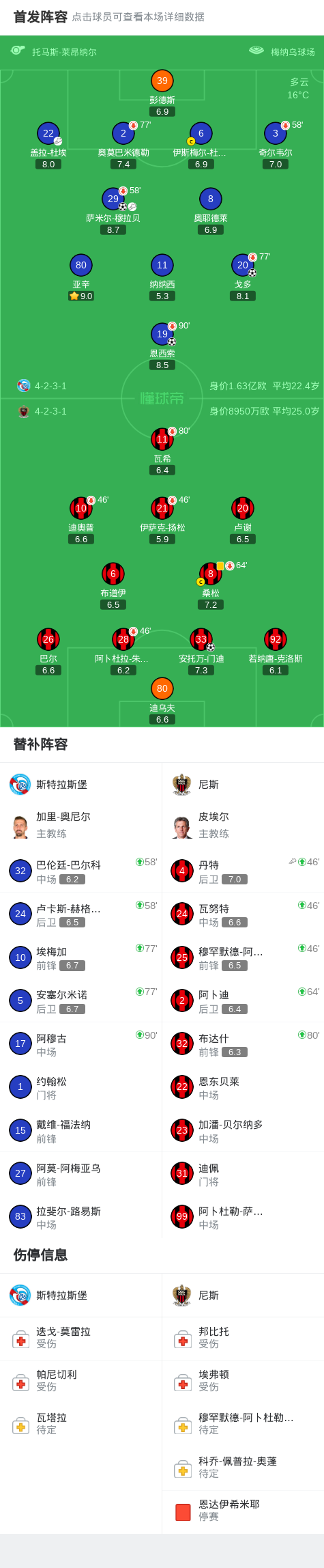 第82分钟,尼斯球员丹特助攻安托万-门迪打入一球。