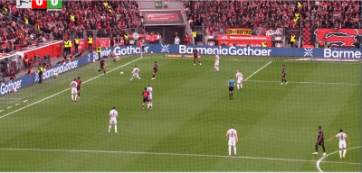 第73分钟,易卜拉欣-马扎推射得分,勒沃库森5-3沃尔夫斯堡