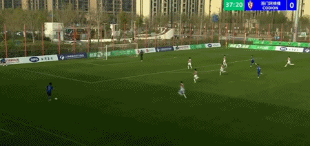第8分钟,范阳阳任意球发到前点,张俊杰垫射破门,海港B队1-0