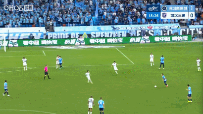 第14分钟,率先得分,韦斯利头球破门,新鹏城1-0三镇
