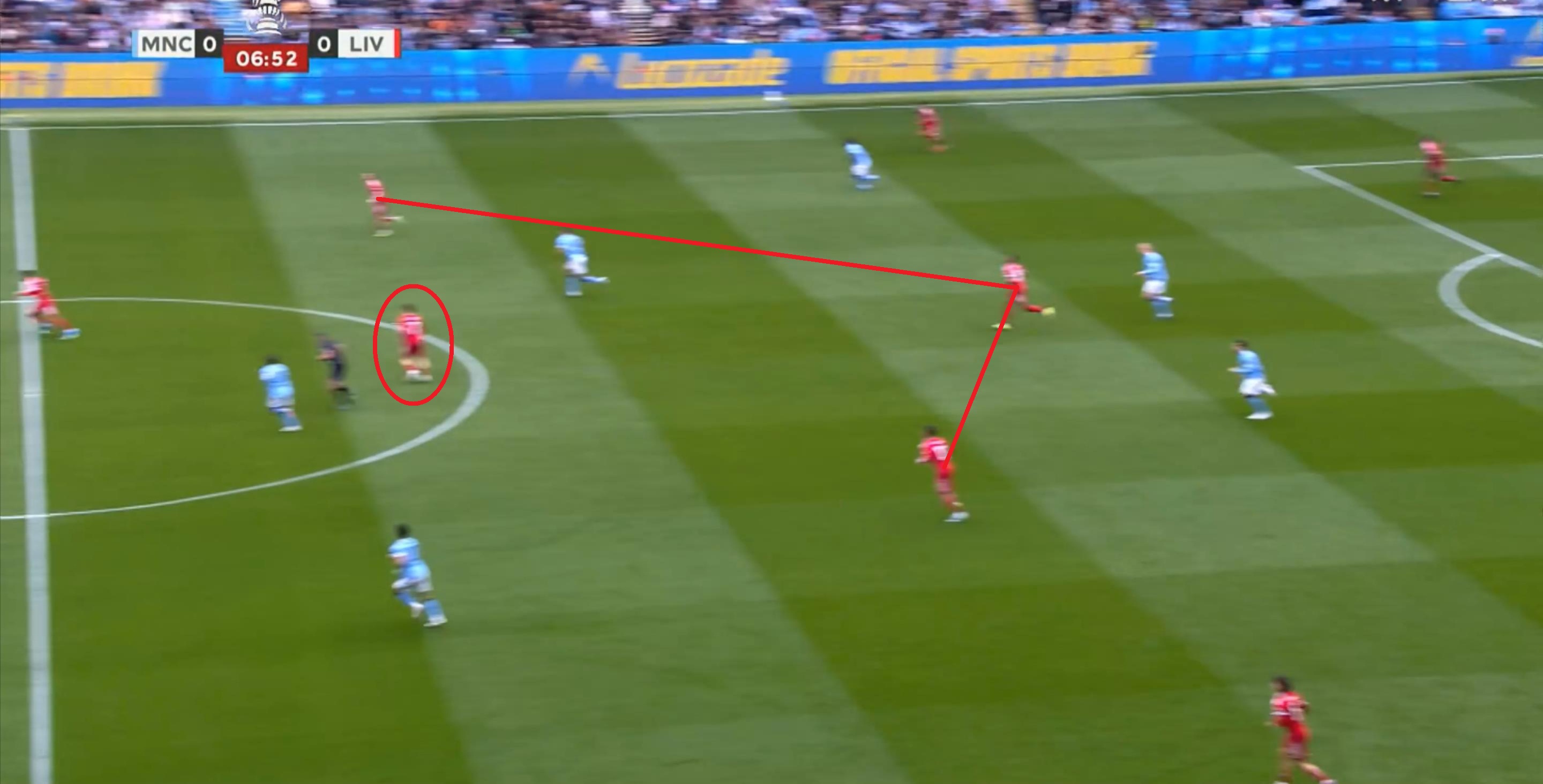 相较于此,还是寄希望于不要被打花更为现实,因为在第57分钟,曼城恰恰是抓住赫拉芬贝赫的上前逼抢,通过渗透逐步打穿了利物浦的中场,从而打出了第四球: