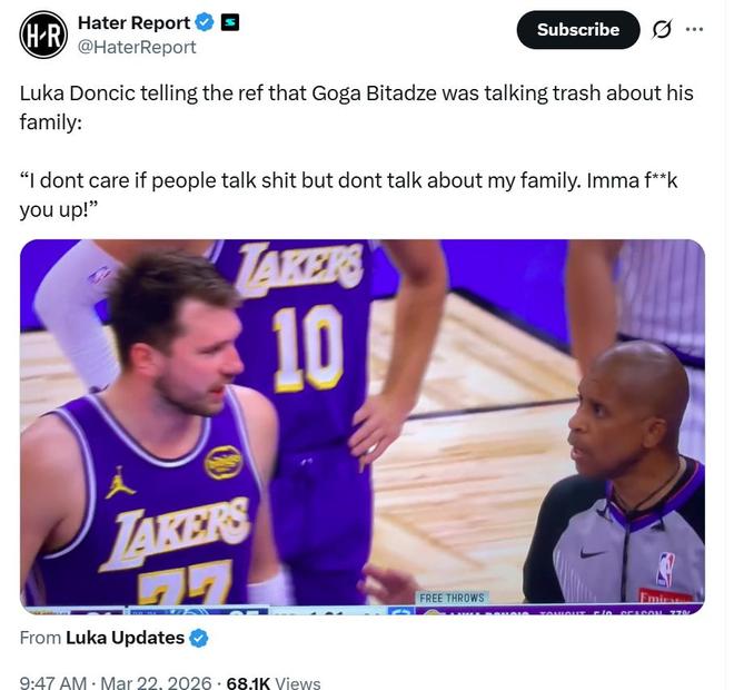 是被辱罵傢人暴怒還是互噴先惹事?東契奇吃到賽季第16個T面臨禁賽事件陷入羅生門!事件三方先後公開發聲各執一詞,湖人被曝已上訴。