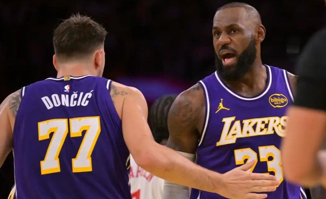 好在湖人有東契奇和裡夫斯這對雙核撐場面,老大和二當傢的組合,直接扛起瞭球隊的進攻大旗。