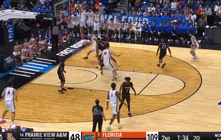 NCAA“疯狂三月”第二轮即将开打,在威斯康星、北卡等名校相继爆冷出局的背景下,卫冕冠军佛罗里达大学短吻鳄队可是稳如泰山。在首轮比赛中,他们以114-55狂胜普雷里维尤农工大学整整59分(布吉·弗兰德拿下全队最高的16分),轻松碾压过关。