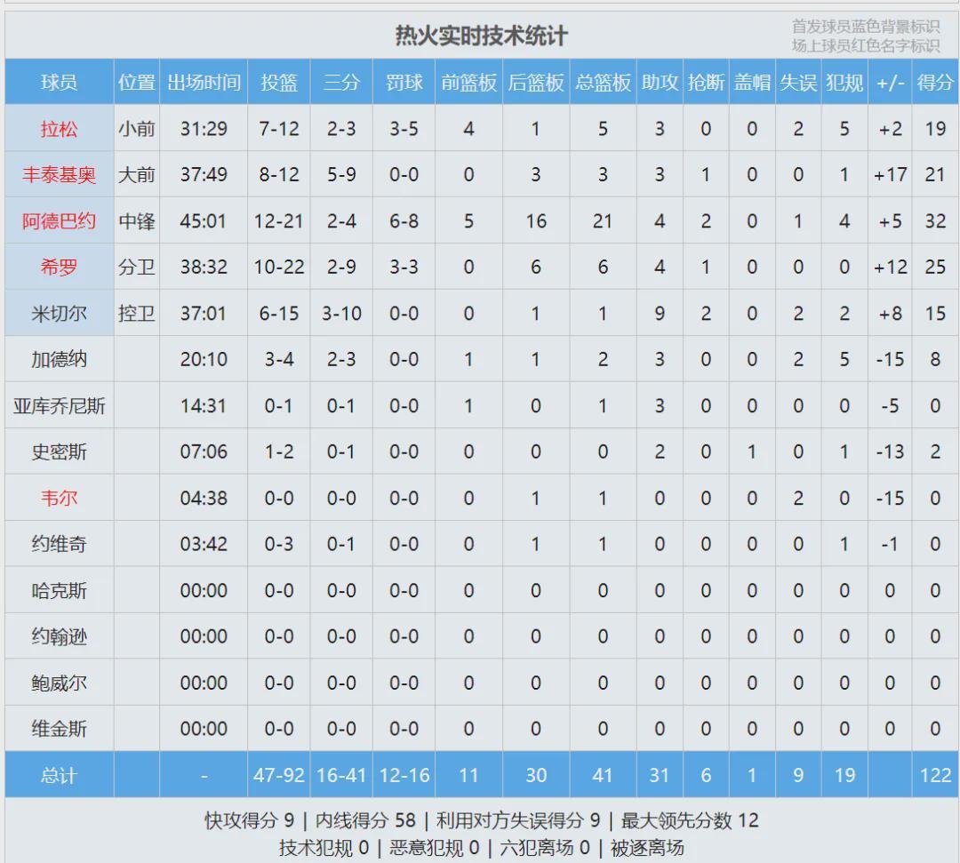 北京时间3月22日,NBA常规赛:火箭123-122绝杀热火。阿德巴约21投12中,三分4中2,罚球8中6,狂砍32分21篮板4助攻2抢断。阿门-汤普森17投10中,三分1中1,罚球3中3,砍下24分18篮板4助攻,最后时刻压哨补篮绝杀。