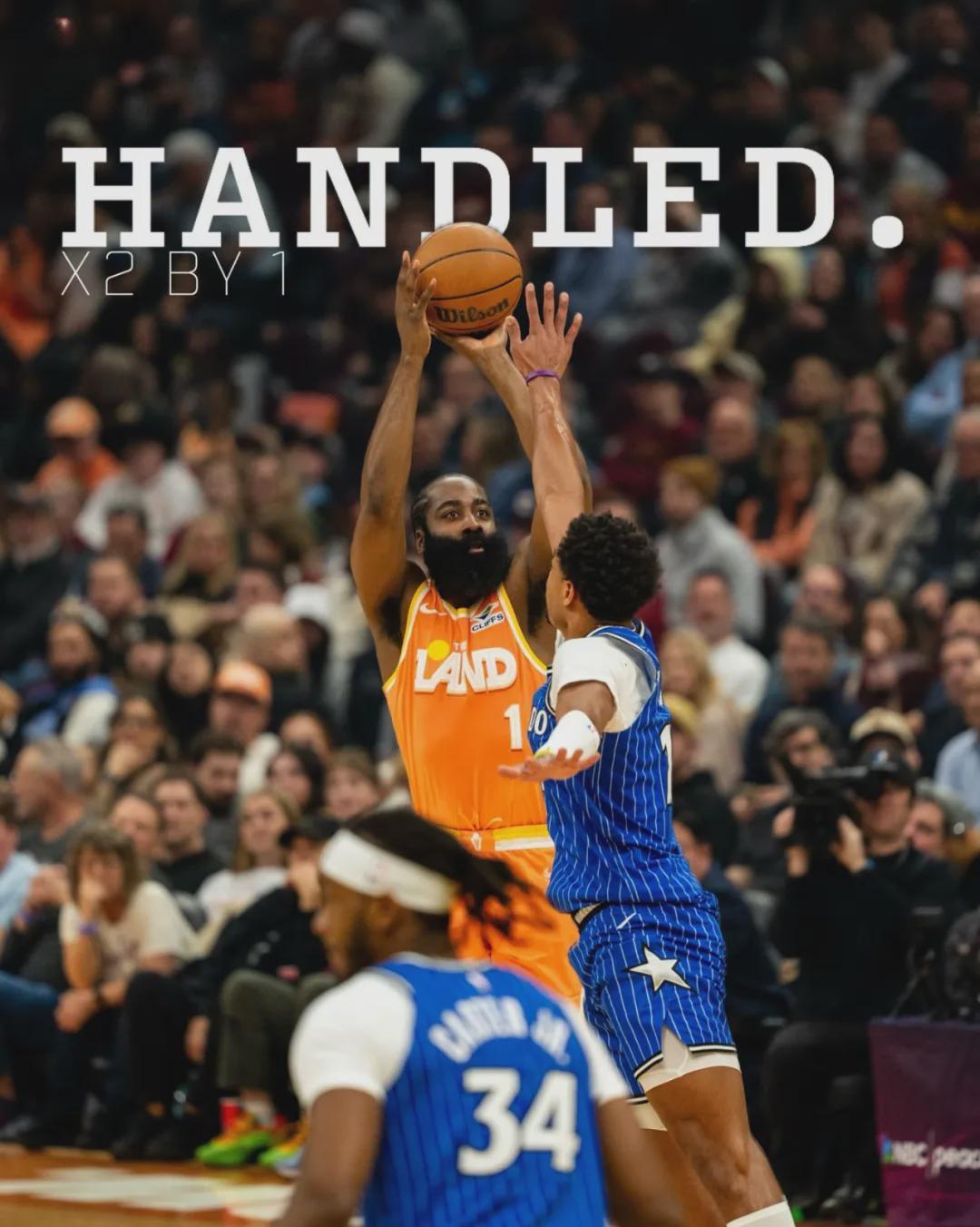 哈登在骑士打了19场,球队14胜5负。哈登场均出战34.4分钟,得到21分5.4篮板7.7助攻0.7抢断3.4失误。投篮命中率48.2%,三分命中率45.2%,罚球命中率82.9%。场均得分比他在快船时下降,投篮命中率和三分命中率明显提升。