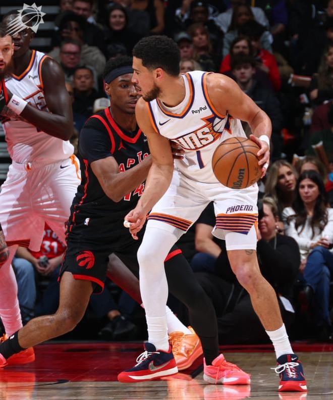 比賽開打之後,佈克和傑倫格林就展現出瞭火熱的進攻狀態,作為戰術核心的佈克,前兩節在猛龍的嚴防死守之下,雖然沒有送出1次助攻,但是超強的單打能力,也讓對手付出瞭代價,半場12中6飆下瞭17分,傑倫格林更是外線頻頻開炮,兩節命中5記三分球狂砍19分,幫助太陽帶著3分的優勢,回到瞭中場更衣室。