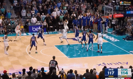 就在当地时间周六晚上,费城76人客场挑战夏洛特黄蜂。全场比赛杀得难解难分,直到最后的决胜时刻,“大帝”恩比德用一次极其强硬的防守,向所有人宣告:这里还是我的地盘!
