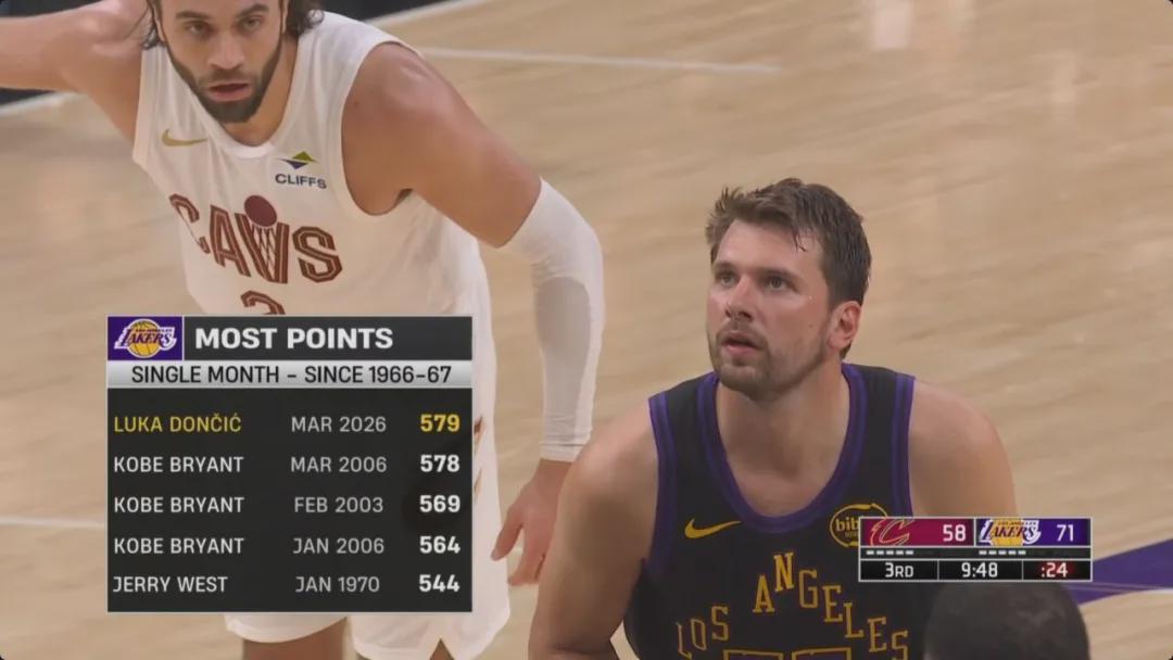 东契奇本场达成多项里程碑:1、生涯总得分突破15000分,用了513场历史第四少,仅次于张伯伦(358场)、乔丹(460场)和贾巴尔(495场);2、单月总得分超越2006年3月的科比(578分),成为湖人队史单月得分王。