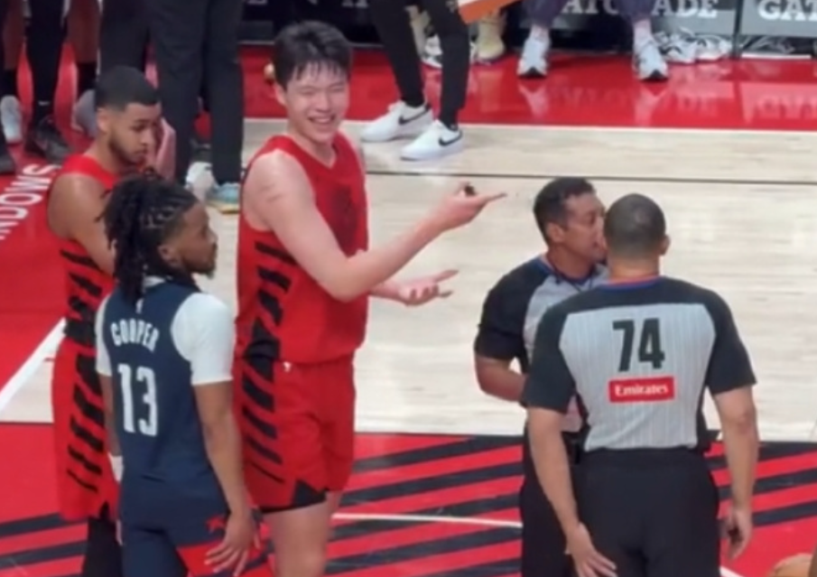 而在一次对手罚球的时候,杨瀚森要拼抢篮板,此时奇才队的球员里斯抱摔了杨瀚森,将他摔在地上。杨瀚森当时没有什么反应,被队友拉起来之后还冲着裁判笑嘻嘻,仿佛是在嘲讽对手的气急败坏。此时,裁判各打五十大板,吹了杨瀚森和里斯各一个技术犯规。