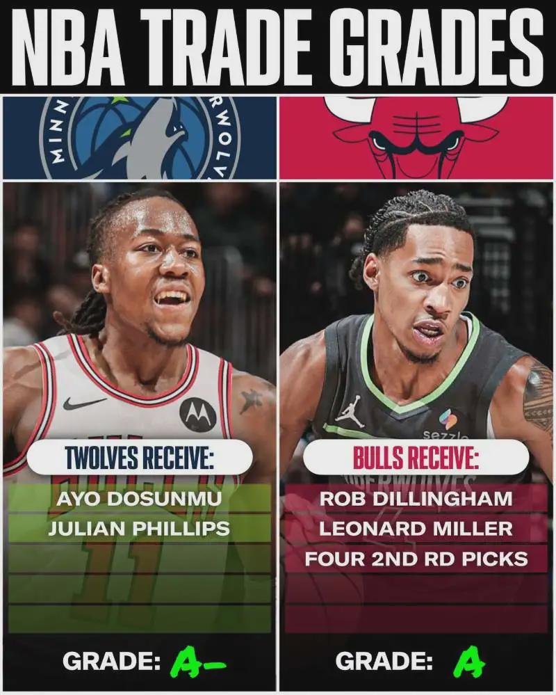火箭队总经理拉斐尔-斯通当时说道:“我对火箭目前的阵容很满意,所以没进行任何交易。”森林狼果断出手,打包迪林厄姆、伦纳德-米勒和4个次轮签,6换2从公牛得到多森姆和朱利安-菲利普斯。这个筹码火箭给得起,只可惜错过了。