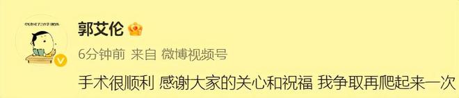 郭艾倫在做完手術之後,也是在第一時間向大傢報瞭平安,說自己的手術十分順利!已經進入休養康復階段,讓大傢不要擔心。