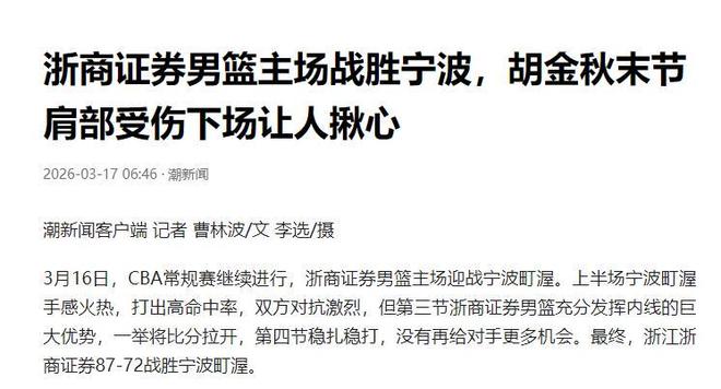 倒地不久後,胡金秋也退出瞭本場比賽。