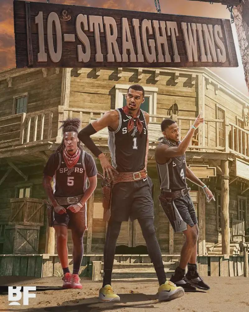 马刺豪取10连胜,继续紧追雷霆!值得一提的是,文班上一场砍下41分16板4助3帽。连续两场得到至少40分10篮板,文班亚马(22岁88天)成为NBA最年轻达成这一数据的球员。连续5场至少15分15篮板,马刺队史最长纪录!
