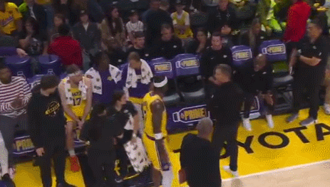 湖人队的转播镜头可谓是“吃瓜第一名”,毫不留情地精准捕捉到了这对师徒在场边剑拔弩张的紧张瞬间。画面中,两人的言语交锋相当火爆,谁也没有退让的意思。雷迪克这波17秒闪电换人的“铁腕”操作可谓是一点情面都没留,而被迫下场的范德比尔特显然也是一肚子憋屈,怒气值直接拉满。