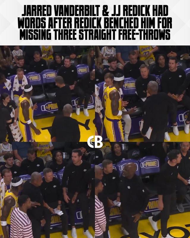 今天洛杉矶湖人队对阵俄克拉荷马城雷霆队的比赛中,场上出现了一幕令人吃惊的“抓马”画面。这次的火药味没有出现在对手之间,而是直接爆发在了湖人自家的替补席上——主教练JJ·雷迪克与范德比尔特(球迷戏称“范德彪”)爆发了极其激烈的争执。