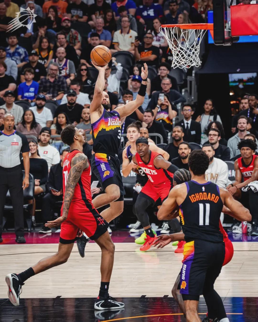 火箭球员知道狄龙经常被情绪左右,今天小贾在狄龙头上造成三分犯规之后,火箭替补席全都站起来!杰夫-格林指着狄龙,杜兰特和范乔丹疯狂鼓掌、嘲讽狄龙。火箭连续两个赛季横扫太阳,只不过上赛季杜兰特在太阳,如今在火箭。