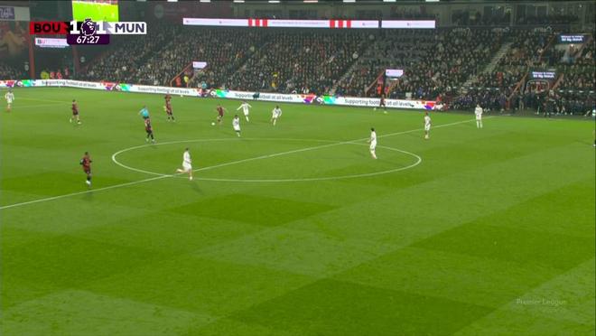 當時,1-0領先的曼聯攻入伯恩茅斯禁區,佈魯諾·費爾南德斯妙傳阿馬德·迪亞洛,後者順勢帶入禁區,在阿德裡安·特魯弗爾又拉又推之下倒地瞭。主裁斯圖爾特·阿特維爾沒有吹犯規,伯恩茅斯得球反擊,並且取得進球。