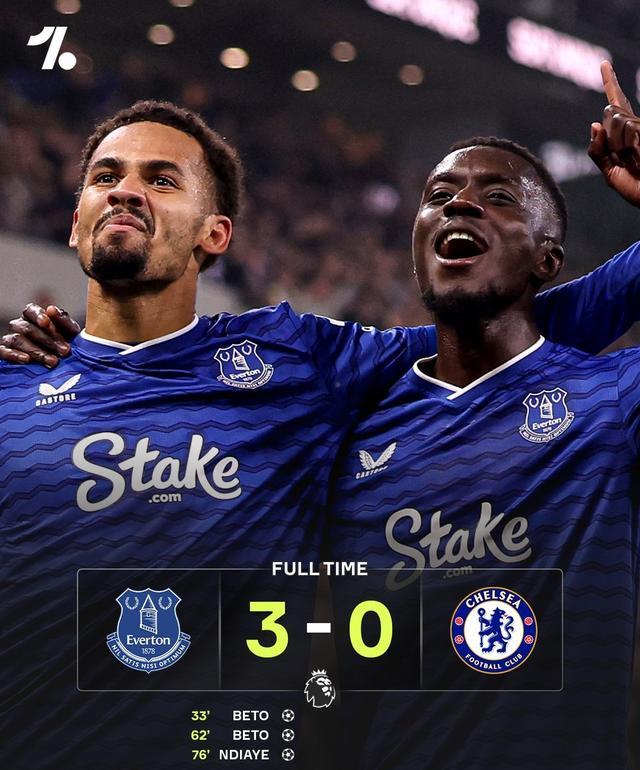 全場戰罷,埃弗頓主場3-0大勝切爾西,拿下自1987年以來對陣切爾西的最大比分勝利,2球1助的貝托當選全場最佳球員!