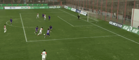 第13分钟,齐龙脚后跟做球,和康豪破门,上海赛更达1-1上海海港B队