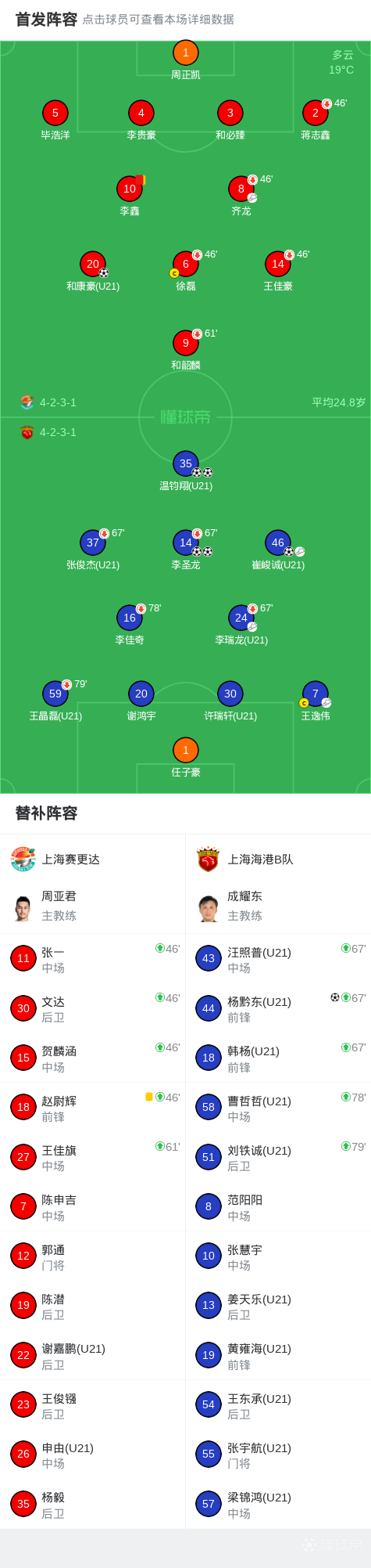 第45+2分钟,王逸伟传中,李圣龙头球破门,上海海港B队4-1上海赛更达