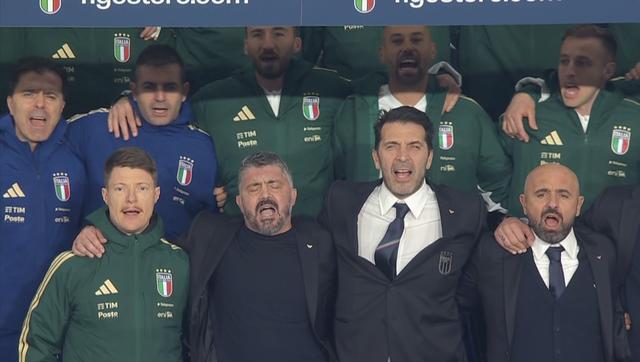作为主帅,加图索这次把“精神属性”拉满了。开赛前的国歌环节,意大利队唱得那是热血沸腾。
